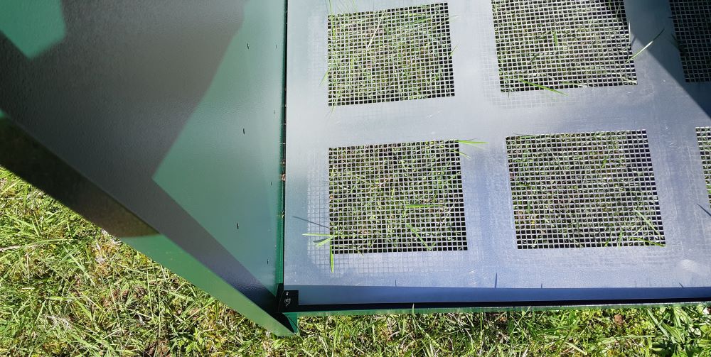 - A bottom screen prevents animals from tunneling in, made of sheet aluminum with 1/4 inch perforations to allow water, worms and microbes to transfer.
