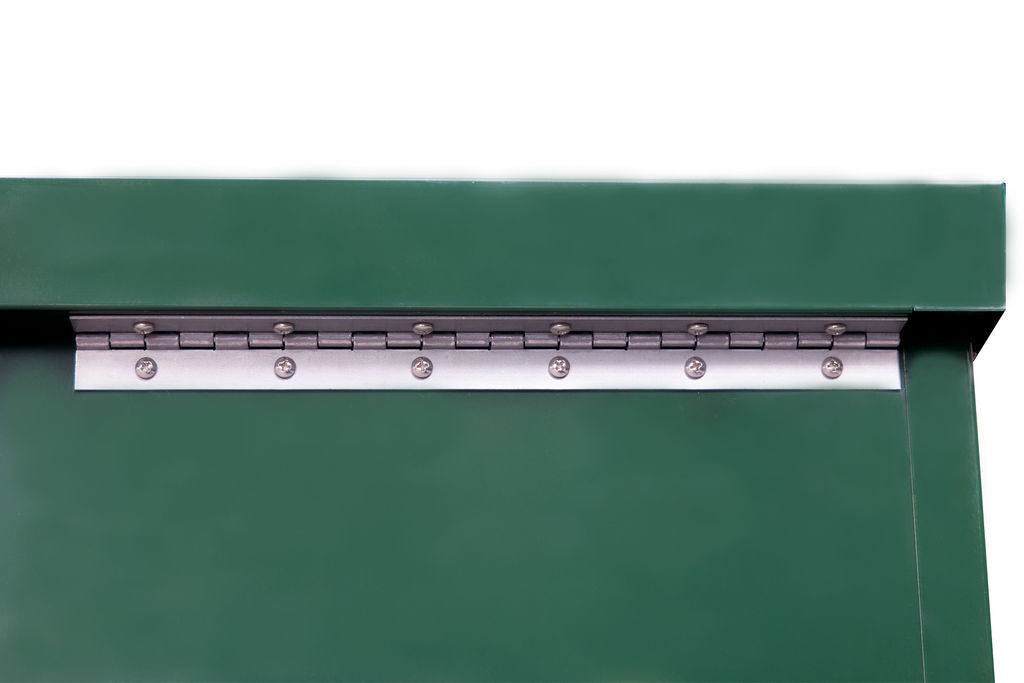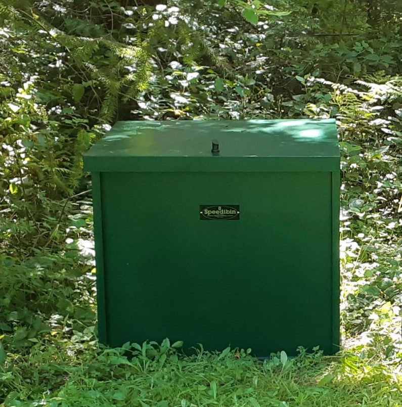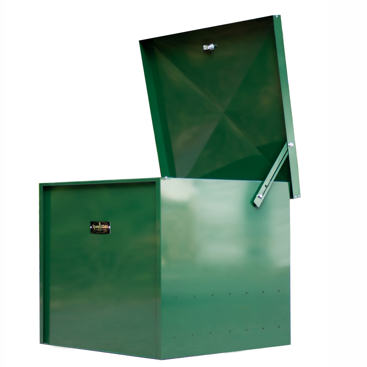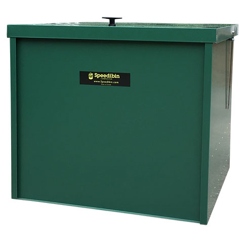 Based on the Classic Speedibin, the lid of the Deluxe model is hinged for easy access. The support arm allows the lid to be held open at about 75 degrees for a quick addition of scraps or at a second position fully open, making it easy to turn or fork over.